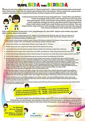 Lomba ini mengajak setiap penulis untuk membuat karya tulis yang berisi pesan-pesan positif, ide-ide cerita maupun pola penulisan yang selama ini belum penah terpikirkan sehingga hasil karya yang penulis buat, tampil beda. Namun tidak sekadar tampil beda, tampil bedanya pun harus berbeda. Tidak asal tampil berbeda, tetapi terkonsep, tidak melanggar sopan-santun dan nilai-nilai yang ada serta memotivasi pembaca untuk tampil beda yang berbeda.